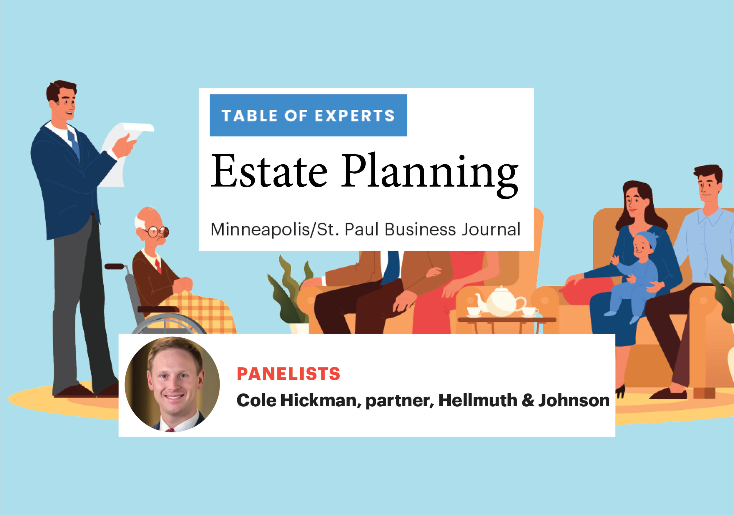 The Minneapolis/St. Paul Business Journal (MSPBJ) has published a “Table of Experts” panel discussion about estate planning, featuring Hellmuth & Johnson partner Cole Hickman.