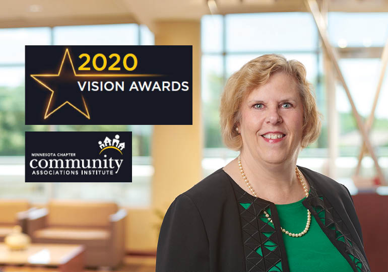 MINNEAPOLIS, MN – (December 8, 2020) – Hellmuth & Johnson is pleased to announce that Nancy Polomis has received the CAI-MN “Business Partner Excellence in Service” Vision Award. The CAI-MN Vision Awards program recognizes the “best of the best” individuals and companies for their outstanding achievements in the community association industry. Award winners and nominees demonstrate high standards of service and a commitment to excellence.